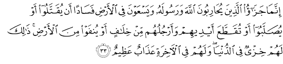 « La récompense de ceux qui font la guerre contre Allah et Son messager, et qui s'efforcent de semer la corruption sur la terre, c'est qu'ils soient tués, ou crucifiés, ou que soient coupées leur main et leur jambe opposées, ou qu'ils soient expulsés du pays. Ce sera pour eux l'ignominie ici-bas; et dans l'au-delà, il y aura pour eux un énorme chAtiment » [Le butin, al-Anfal, verset 25]. Le sang, les biens et l’honneur du musulman sont sacrés dans notre religion. Seul Allah a le droit de juger les êtres. D’ailleurs, notre prophète (sallallahou 'alayhi wa sallam) a dit lors du pèlerinage d’adieu : « Votre sang, votre honneur et vos biens sont sacrés comme l’est ce jour-ci, durant ce mois-ci, dans ce pays-ci. Que les présents informent les absents ! » Méditons bien sur ces assertions qui confirment la sacralité du sang, de l’honneur et des biens du Musulman ! Observons bien comment Le prophète (sallallahou 'alayhi wa sallam) a attiré l’attention des croyants qui l’écoutaient sur l’importance de ce sujet en leur rappelant tout d’abord la sacralité du cadre spatial et temporel dans lequel ils se trouvent : « En quel jour sommes-nous ? En quel mois sommes-nous ? Dans quel pays sommes-nous ? ». Méditons bien sur ce prêche extrêmement important prononcé lors d’un jour grandiose [celui de Mina] lorsque Le prophète (sallallahou 'alayhi wa sallam) a effectué le pèlerinage d’adieu. Tout cela montre à quel point le sang, l’honneur et les biens du musulman sont sacrés. Ces jeunes qui ont choisi la voie du terrorisme auraient-ils apprécié à leur juste valeur ces limites ? Ils massacrent les musulmans et leurs enfants et détruisent leurs demeures en prétendant qu’ils le font au nom de l’Islam et dans l’unique but d’obtenir l’agrément d’Allah ! Dossier sur le terrorisme :