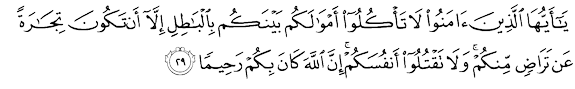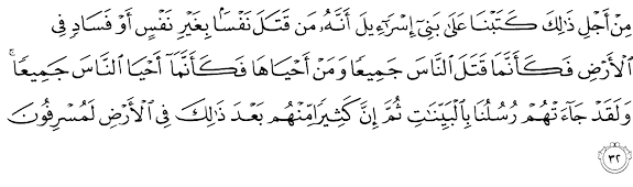 « Et ne vous tuez pas vous-mêmes. Allah, en vérité, est Miséricordieux envers vous » [Les femmes, an-Nissa, verset 29]. En fait, les versets dans lesquels Allah dénonce et condamne fermement ce type de crimes odieux et menace d’un chAtiment sans égal celui qui s’y livre sont nombreux. Nous pouvons citer ce verset magnifique de la sourate de La table servie :