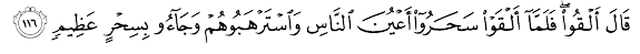 « Ils ensorcelèrent les yeux des gens et les épouvantèrent, et vinrent avec une puissante magie. » [al araf, verset 116]. « Istarhabouhom » signifie : « les effrayèrent et les épouvantèrent ». Allah, Gloire et Pureté à Lui, dit aussi :
