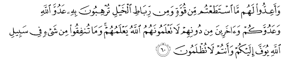 « Et préparez (pour lutter) contre eux tout ce que vous pouvez comme force et comme cavalerie équipée, afin d’effrayer l’ennemi d’Allah et le vôtre » [Le butin, al anfal, verset 60], il parle plutôt de la préparation de l’arsenal de guerre dans le dessein de terroriser l’envahisseur et l’agresseur (le colonisateur) et ce, en respectant les normes légiférées et les limites fixées par la Charia islamique. Définition conceptuelle du TerrorismeLa définition la plus pertinente et la plus appropriée qui englobe tous les aspects du terrorisme et qui prend en considération les décrets et la terminologie jurisprudentiels est celle de l’Académie Islamique de Jurisprudence rattachée à la Ligue Islamique Mondiale : « [le terrorisme] est l’agression que mènent injustement des personnes, des groupes ou des Etats contre un individu, et ce, en ciblant sa religion, sa vie, ses biens ou son honneur » Le terrorisme englobe de ce fait toutes les formes illégitimes d’épouvantement, de nuisance, de menace et d’assassinat. Il englobe aussi le banditisme, le vandalisme, le brigandage et tout acte de menace ou de violence qui vise à exécuter un projet criminel (individuel ou collectif) dont l’objectif ultime est de semer la terreur entre les gens, de les épouvanter et d’exposer au danger leur sécurité, leur liberté ou leur vie. Parmi les formes du terrorisme, nous pouvons citer aussi le fait de porter préjudice à l’environnement, aux services publics et aux propriétés. Détruire les institutions ou piller les biens, menacer quelqu’un ou exposer sa vie au danger relèvent de la corruption sur terre qu’Allah a fermement dénoncée lorsqu’Il dit, Exalté soit-Il :