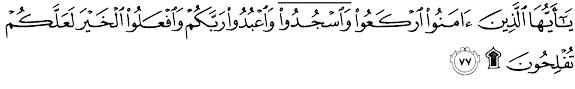 6) Se redresser de l'inclinaisonLe prophète (sallallahou 'alayhi wa sallam) se redressait de l'inclinaison avant de se prosterner. [Rapporté par Mouslim] Il faut marquer l'arrêt lors de la position debout. Il ne faut pas se relever puis repiquer au sol pour se prosterner comme le ferait un coq qui veut picorer. Prenez votre temps. 7) Les 2 prosternations et la position assise entre les 2Allah dit :