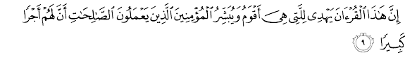 {Certes, ce Coran guide vers ce qu'il y a de plus droit, et il annonce aux croyants qui font de bonnes oeuvres qu'ils auront une grande récompense} [ Sourate 17 - Verset 9]